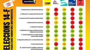 Lo ha hecho a través de un documento que la ANC ha bautizado como «fiscalización de candidaturas independentistas». Curiosamente en estas valoraciones el peor valorado siempre es Esquerra, solo superado por el PDeCAT.