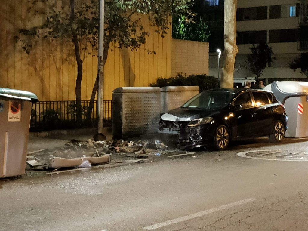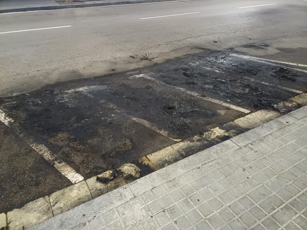 El incendio de finales de mayo fue el más grave. Varios contenedores fueron quemados y un coche aparcado justo al lado quedó destrozado, en una acción provocada por desconocidos. El estallido de las botellas provocado por el fuego dio durante un rato la sensación que una traca de petardos estaba estallando. En el momento que este medio llegó un contenedor todavía humeaba, pero el fuego ya había sido apagado.