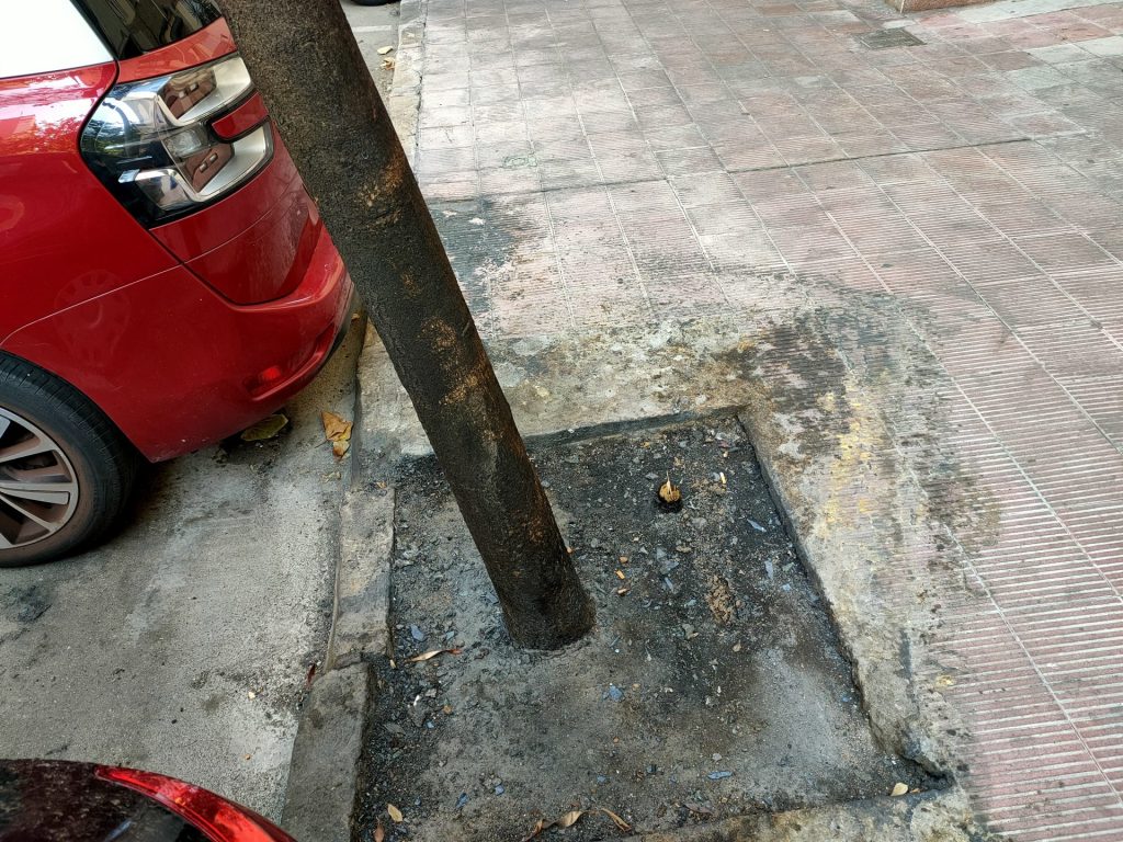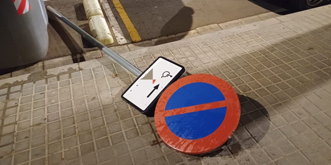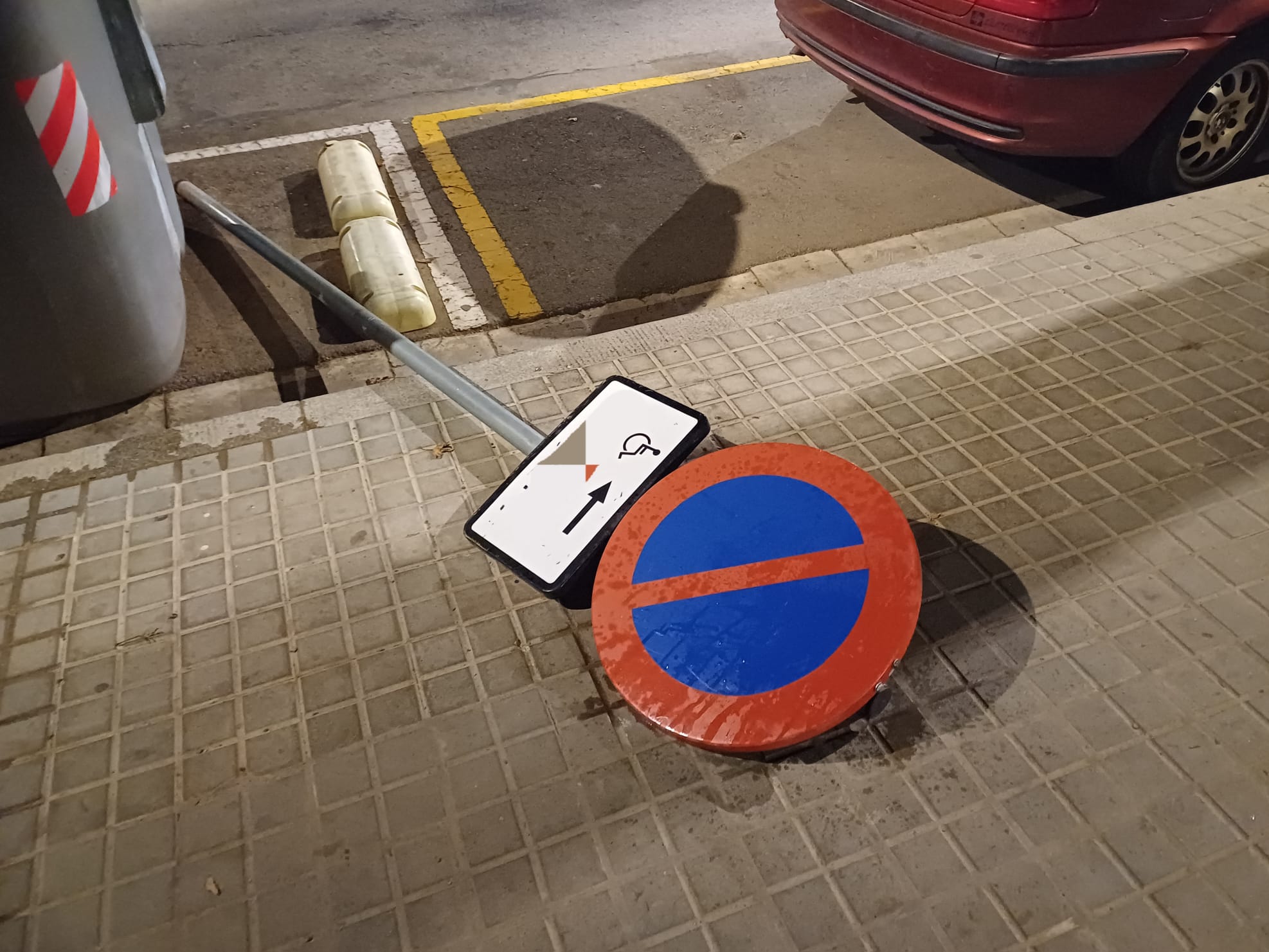 Además, este lunes se arrancó de cuajo una señal de tráfico para reservar una plaza de aparcamiento para una persona con una discapacidad, y ha permanecido varios días en el suelo sin que nadie la retirara y la reemplazara (en la imagen hemos borrado la matrícula del vehículo al que se guarda dicha plaza).
