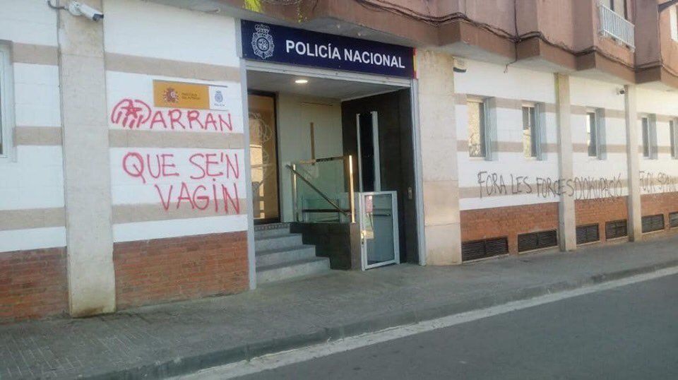 En la fachada de la comisaría de la Policía Nacional en Rubí, y bajo la firma de Arran se puede leer, «Que se vayan«, «Fuera las Fuerzas de Okupación» y «Fuck Spain«. Una muestra más de la intolerancia de los separatistas.