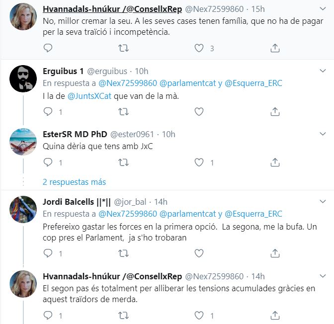 El separatismo radical tiene «ganas de marcha» y en las redes sociales están llamando a prender fuego a las calles y tomar el Parlament, tal y como cuentan los compañeros de elliberal.cat