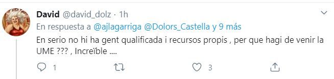 Como decíamos antes radicales independentistas han montado en cólera al comprobar la presencia de la Unidad Militar de Emergencias en el municipio tales como «la UME está en la Garriga No jodas!», «¿En serio no hay gente cualificada y recursos propios, para que tenga que venir la UME? Increíble» o «¿En serio? ¿Habéis llamado el Ejército? ¡Qué vergüenza! ¡Tenemos bomberos ofreciéndose y vais a buscar los militares!».