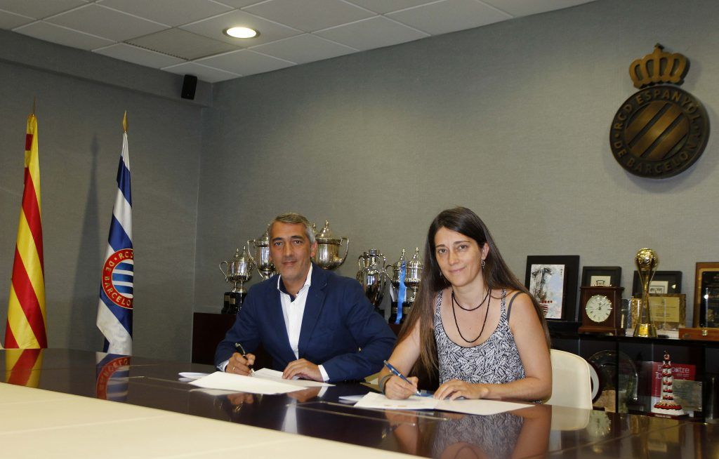 La directora de la ONG del catalán, Neus Mestres, y el consejero delegado del RCD Espanyol de Barcelona, Ramon Robert, han firmado un convenio de colaboración que permitirá formar en sensibilización lingüística a los entrenadores de fútbol federado, escuela, jugadores y jugadoras, y padres y madres.