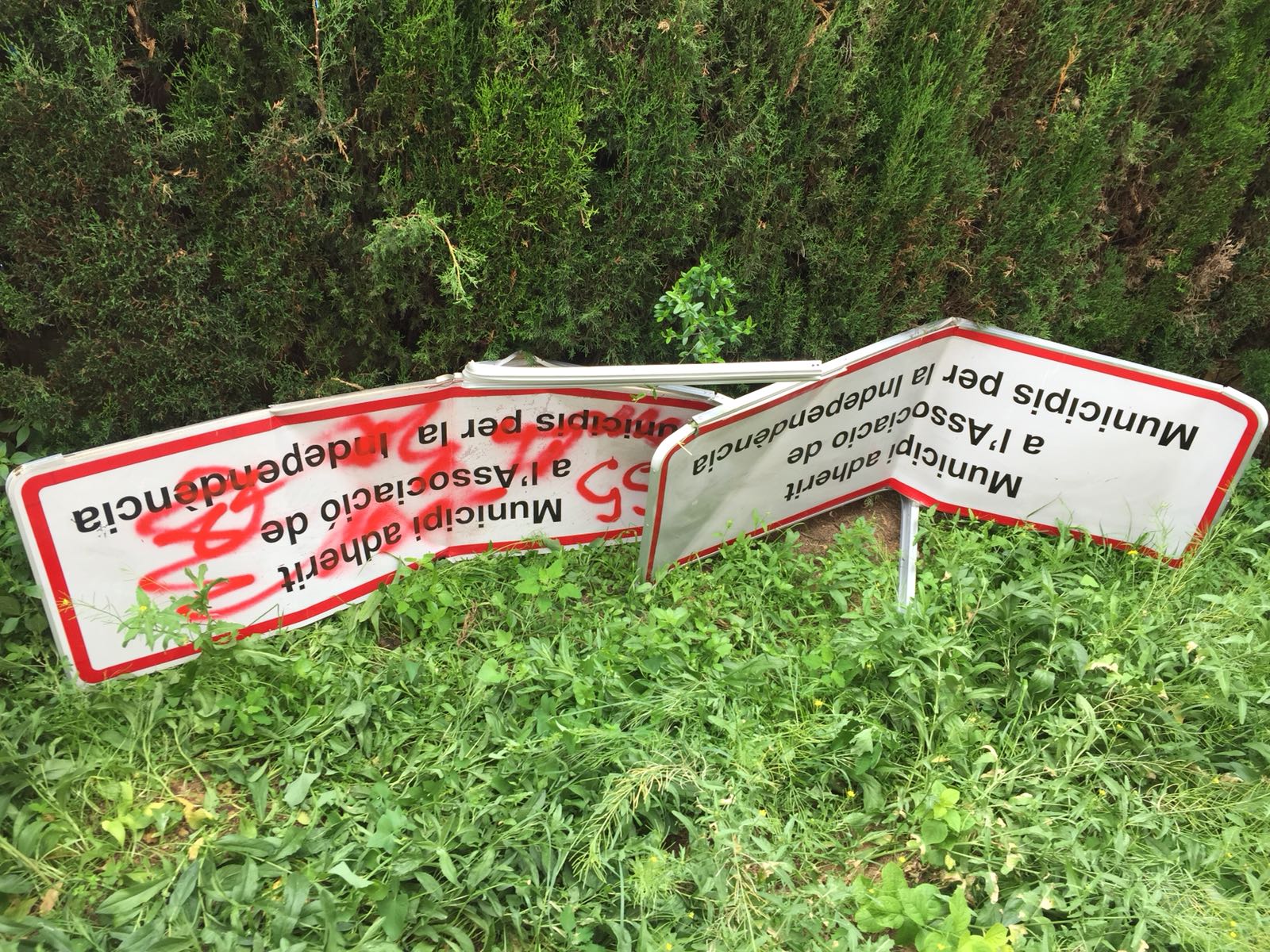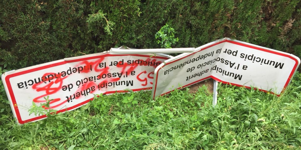 También retiraron diversas placas que adherían, de manera ilegal, a ambos municipios a la fantasmagórica «República catalana».