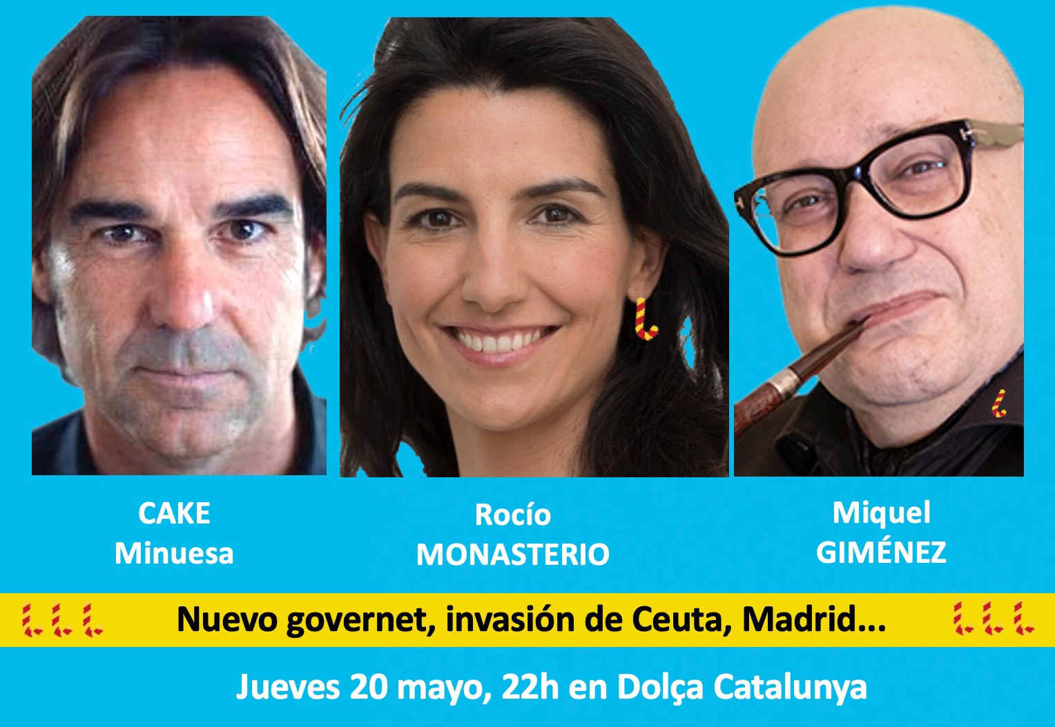 La tertulia vía streaming ‘L’Hora Dolça’, de Dolça Catalunya, emitirá el jueves 20 de mayo, a partir de las 22:00, un programa especial dedicado a la actualidad política (Cataluña, Ceuta, Madrid…) que se podrá seguir en las redes sociales de este portal y en su canal de Youtube.