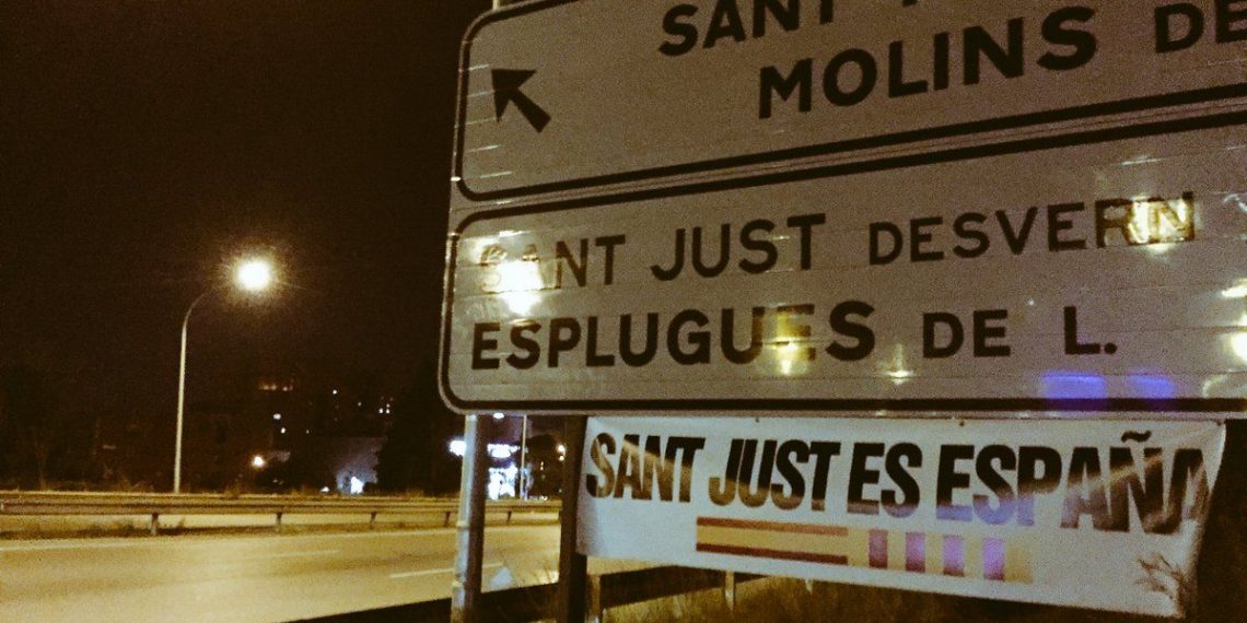 Aunque la foto es de hace unos días (5 de diciembre) hemos querido destacar esta imagen de cómo avanza la resistencia al secesionismo en todos los rincones de Cataluña. Sant Just Desvern es una ciudad muy cercana a Barcelona.