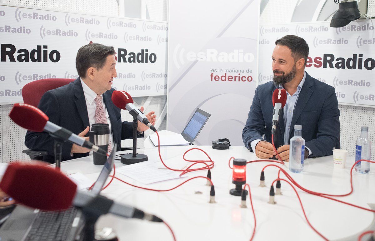 Este lunes ha pasado por los micrófonos de esRadio el líder de VOX, Santiago Abascal, que ha analizado con Federico Jiménez Losantos los tema de actualidad en España, además ha asegurado que van a anunciar una nueva querella contra el juez belga que intenta encausar al juez Pablo Llarena. Cree que «la mejor defensa es un buen ataque«.