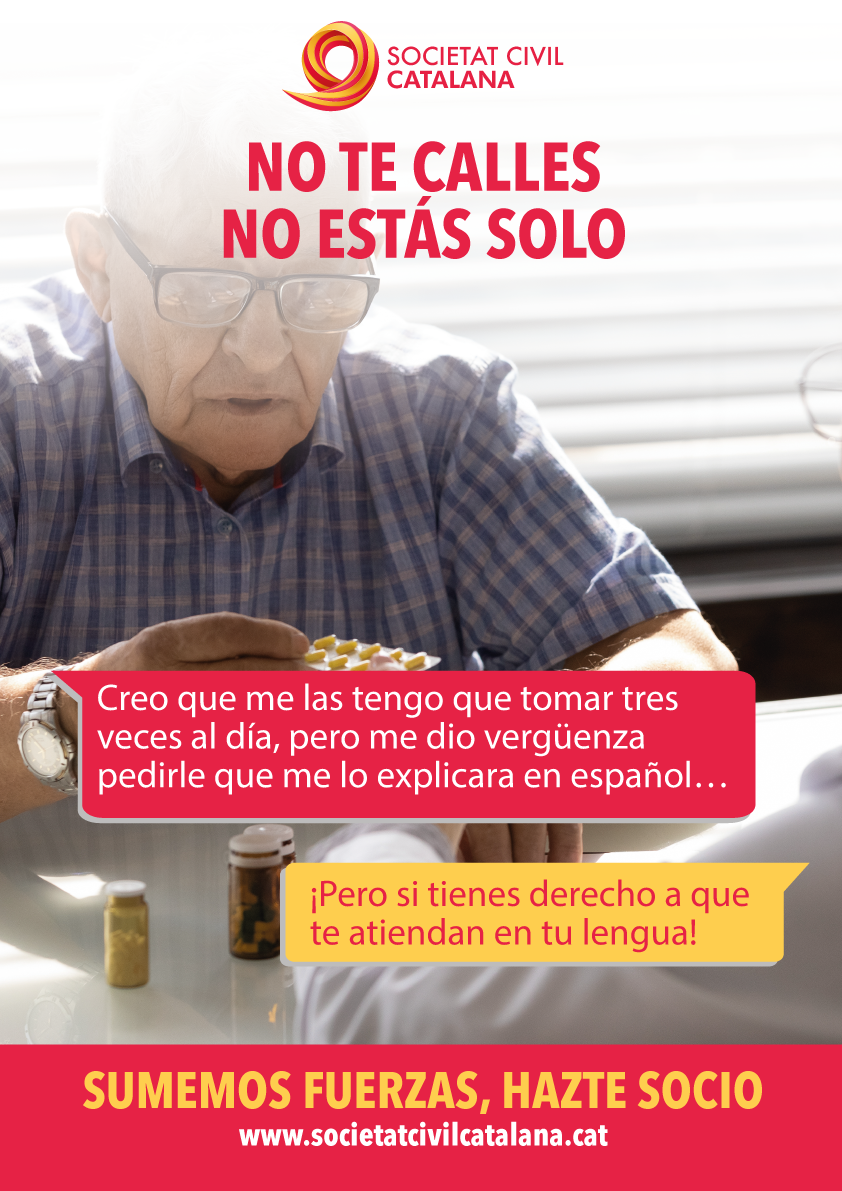 A través de tres situaciones cotidianas, la campaña retrata la marginación, el aislamiento y la presión social que recae sobre una parte importante de la población de Cataluña por razón de lengua. Una estudiante, un paciente y una persona que busca trabajo encarnan a aquellos ciudadanos que, en un contexto de vulnerabilidad personal o profesional, ni tienen los mismos derechos y oportunidades, ni encuentran en la lengua una herramienta de comunicación, sino un obstáculo para su plena integración.
