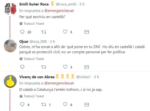 Que también se usara el castellano para advertir a los ciudadanos no gustó a algunos tuiteros secesionistas.