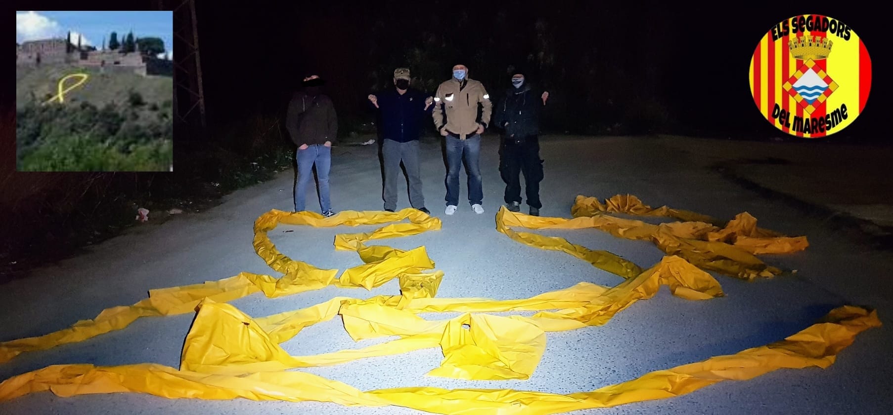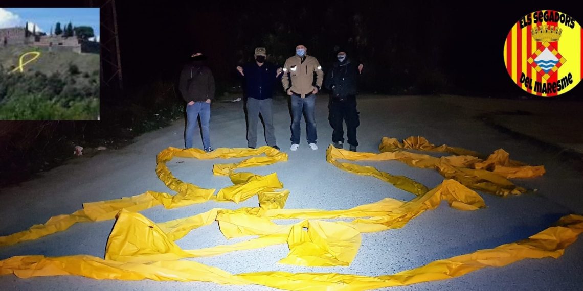Segadors del Maresme ha vuelto a retirar el lazo amarillo gigante de Hostalrich, que es perfectamente visible desde la autopista AP-7 y que es objeto de un juego del ratón y el gato. Radicales separatistas lo ponen, y a los pocos días la Resistencia lo quita.