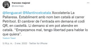 Lamentablemente esta es una práctica habitual entre los independentistas que desean arrinconar el castellano y señalar públicamente a todo aquel que osa elegir el idioma común como de uso normal.