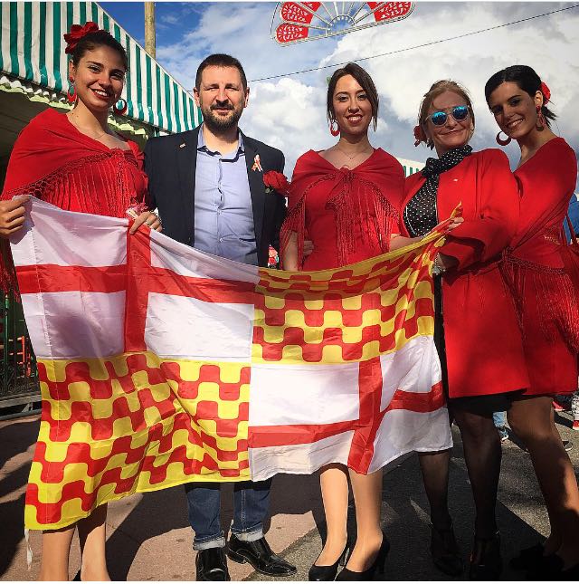 Miguel Martínez, presidente de la Plataforma por Tabarnia, ha visitado la Feria de Abril de Cataluña, en el barcelonés recinto del Fórum, con una delegación de esta entidad constitucionalista.