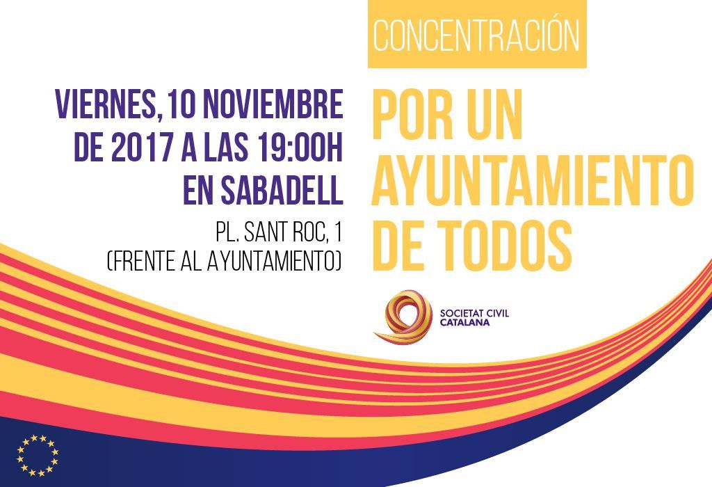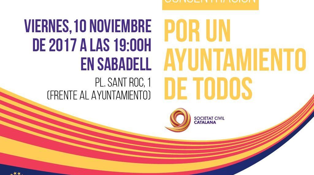 Societat Civil Catalana organiza el viernes 10 de noviembre, a las 19:00, una manifestación en Sabadell, en la Plaza de Sant Roc, frente al edificio consistorial con el lema «Por un ayuntamiento de todos».