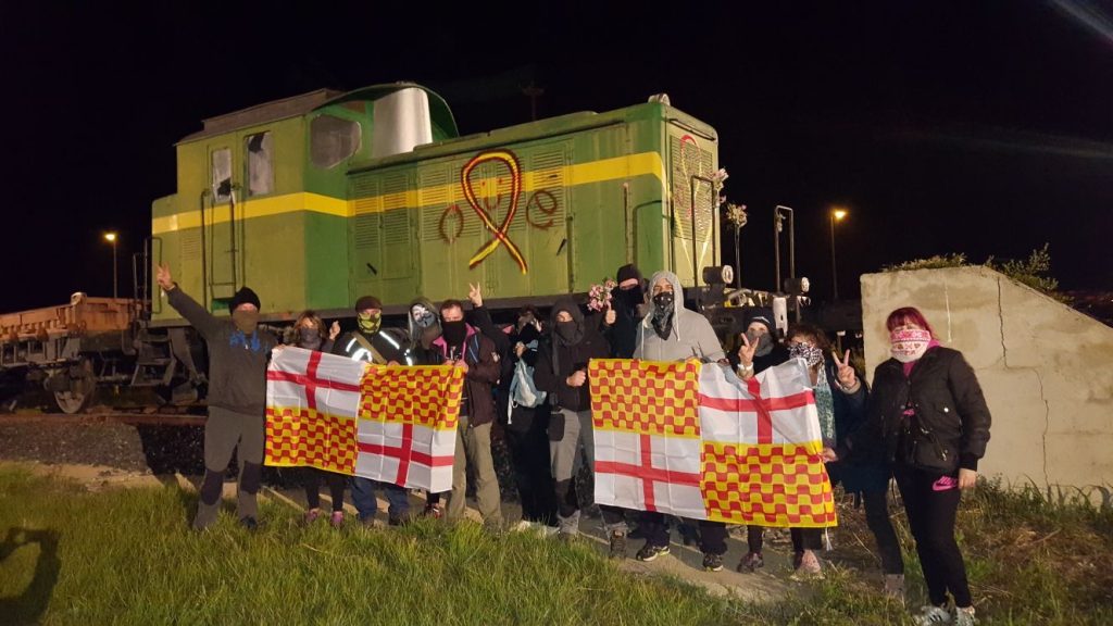 En este caso en las cercanías de la estación del AVE, en la localidad de Perafort, reconvirtiendo lazos amarillos en lazos rojigualdas.