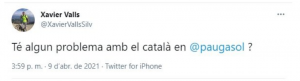 Este periodista se preguntó en las redes sociales si Pau Gasol tenía algún problema con el catalán. Finalmente el jugador del Barça acabó poniendo un tuit también en catalán sobre su vuelta a las pistas de baloncesto dos años después.