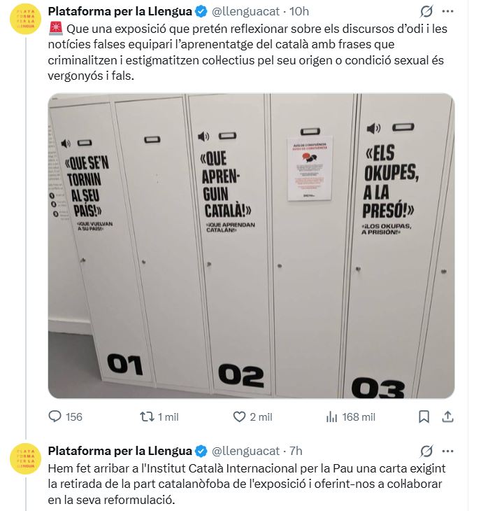 La controversia se intensificó después de que la entidad Plataforma per la Llengua – que es conocida por espiar a los niños en que lengua hablaban en los patios – enviara una carta al presidente del ICIP, Xavier Masllorens, denunciando que situar la petición de aprender catalán junto a consignas de rechazo era “inadecuado e injusto”. La organización subrayó que, en el contexto sociolingüístico de Catalunya, el catalán se encuentra en una situación de menor protección legal que el castellano.