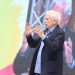Una voluntaria de una de las carpas instaladas en la concentración anti adoctrinamiento y en apoyo a los alumnos del IES Palau señalados por algunos de sus docentes por ser hijos de guardias civiles muestra su apoyo y su alegría por el éxito del acto bailando alegremente.