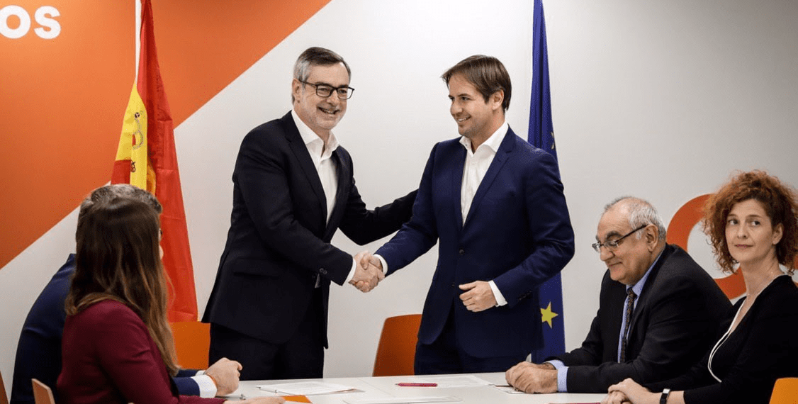 El líder nacional de UPYD, Cristiano Brown, y el secretario general de Cs, José Manuel Villegas, han comparecido este jueves para desvelar a los medios los detalles del acuerdo.