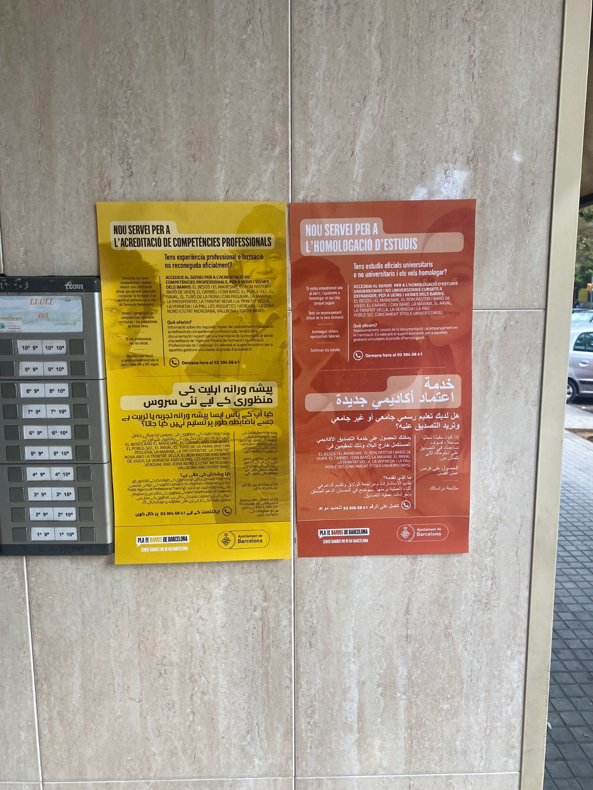 Eva Parera ha denunciado que el gobierno de Colau y PSC excluyen el castellano en los carteles informativos sobre formación y estudios para personas extranjeras que se han distribuido en varios barrios de la ciudad como puede ser Besòs y el Maresme (fotografía adjunta).