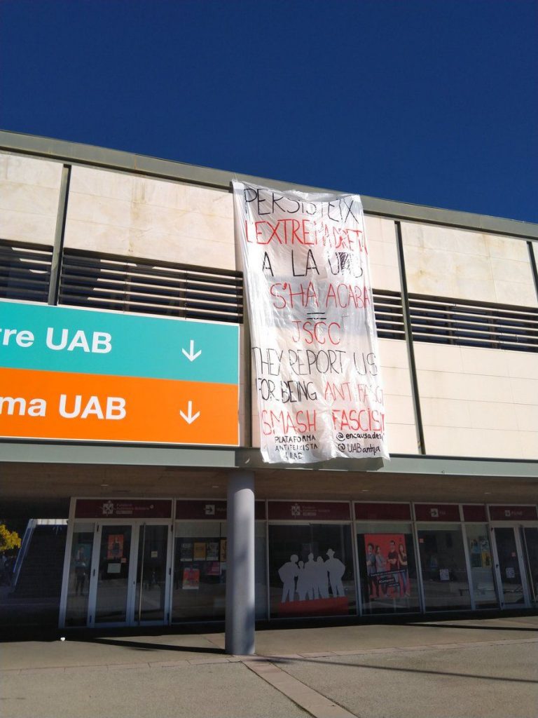 Dicha pancarta contenía mensajes de este tenor: «Persiste la extrema derecha en la UAB. S’ha acabat» y «Destruye el fascismo».