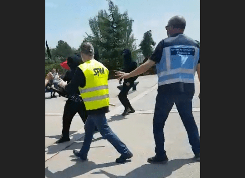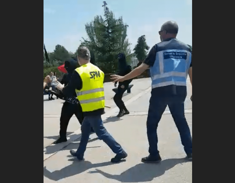 Unos totalitarios armados con palos han cargado contra la carpa y los jóvenes que en esos momentos se encontraban en la misma y portando una música a todo volumen en la que se podía escuchar lindezas como «antiespañol».