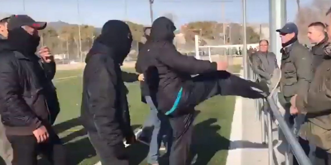 Un independentista abrió el fuego intentando patear a un seguidor de Vox y entonces aparecieron agentes de los Mossos d’Esquadra, que estaban presentes en el campo de fútbol.