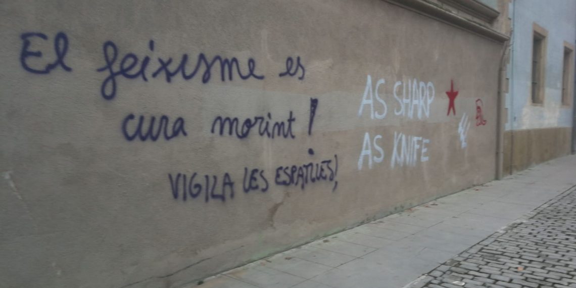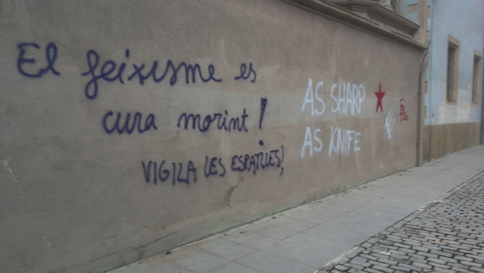 Además durante la noche los secesionistas se han dedicado a realizar diferentes pintadas por la zona donde Ciudadanos ha colocado su carpa informativa, en las mismas se podían leer frases como «El fascismo se cura muriendo, vigila tus espaldas» o «Que vuelva Terra Liure«, todas ellas lógicamente en catalán.