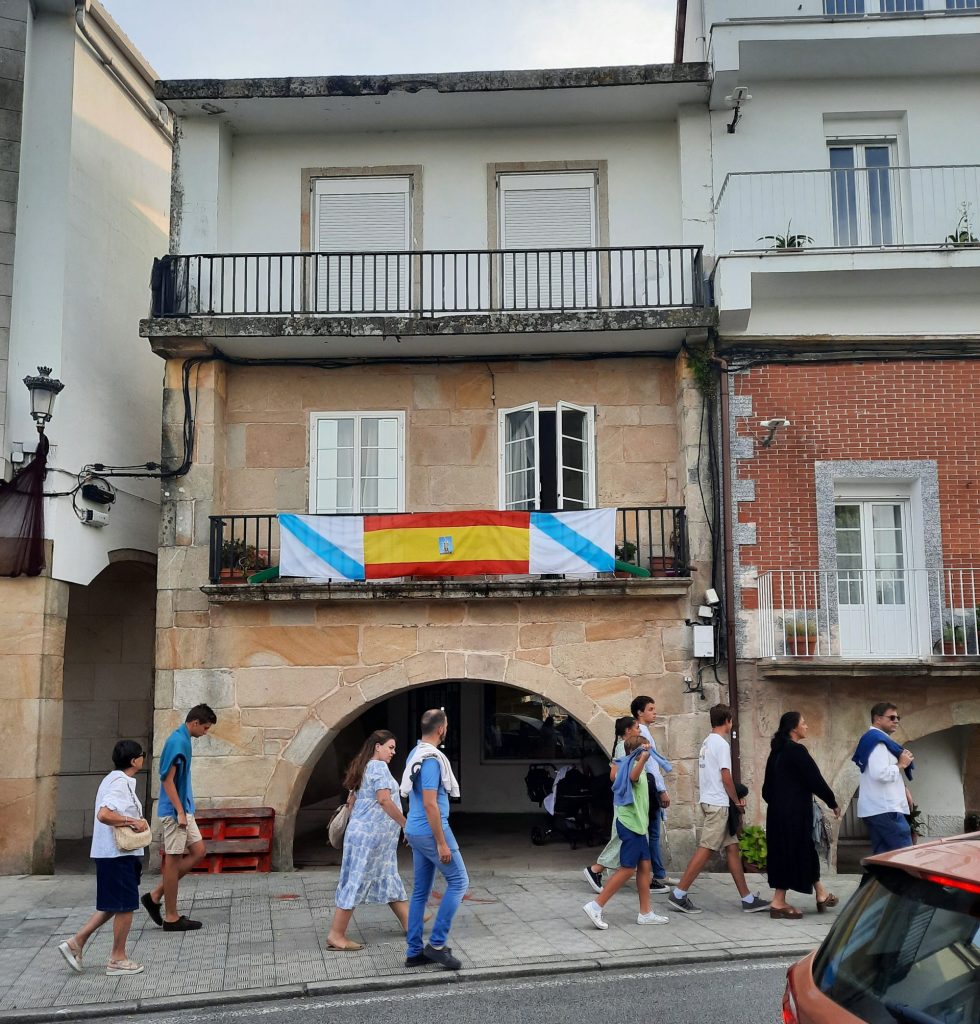 Como seguimos por tierras gallegas hoy he podido vivir algunas de las múltiples celebraciones que tienen lugar en el bonito pueblo marinero de Muros de San Pedro (La Coruña). Por la tarde se ha celebrado primero la procesión por mar (donde en casi todas las embarcaciones era bien visible la bandera española).