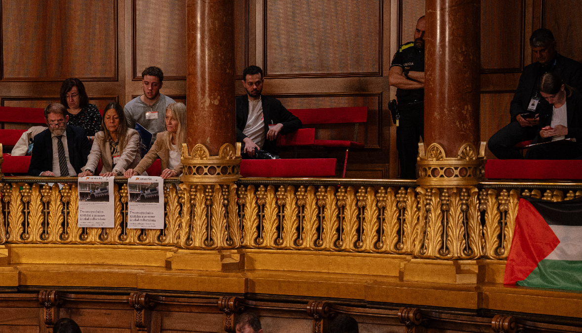 El grupo municipal de VOX en el Ayuntamiento de Barcelona denuncia la decisión del alcalde Jaume Collboni de obligar a retirar los carteles colocados por VOX en los que se advertía de la creciente inseguridad que sufren los vecinos de la ciudad, al mismo tiempo que mantiene una bandera de Palestina en el pleno municipal. En los carteles mostrados por VOX se denunciaba que tres encapuchados apuñalaron a una menor de edad en Barcelona.